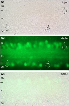 可识别GABA。通过用与戊二醛偶联的100 μM GABA预吸收来阻止染色。500 μM的谷氨酸、谷氨酸盐和牛磺酸的类似偶联物无法进行阻止染色。