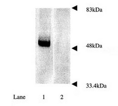 蛋白质印迹:1:1000 - 1:2000(在人类大脑的斑点上识别44-52 kDa的双重序列)