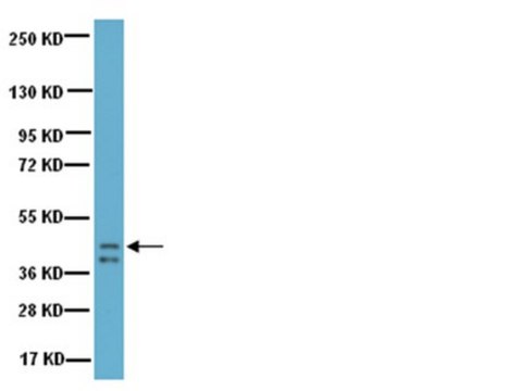 蛋白质印迹分析:该批次的1:500的稀释液在10 μg小鼠脑裂解物中检测到生长相关蛋白43。