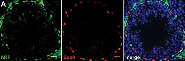 免疫组织化学分析:一个代表性批次产品通过石蜡包埋的小鼠睾丸切片的免疫组织化学染色对生精小管的支持细胞(Sertoli)进行了免疫染色(O′Shaughnessy, P.J., et al. (2012).PLoS One.7(4):e35136).