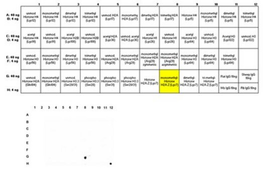 Dot Blot Analysis: A 1:1,000 dilution from a representative lot detected monomethyl Histone H2A.Z (Lys 7) in Histone peptides with various modifications.