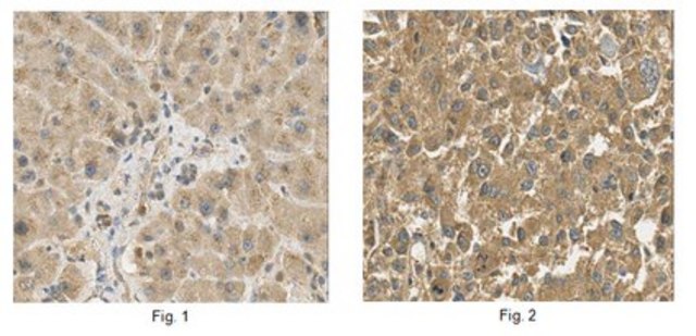 Immunohistochemistry Analysis: A 1:50 dilution from a representative lot detected Serpinf2 in human liver and human liver cancer tissue.