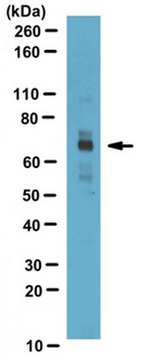 ~68 kDa observed (cleaved form). Uniprot gives a calculated weight of 74 kDa; however, CPT2 has been observed at ~68 kDa (Faye, A, et al. (2007). The Journal of Biological Chemistry. 282(37):26908–26916.). Uncharacterized bands appear at ~55, 58, 72, and 100 kDa in some lysates.