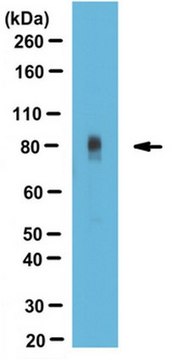 ~80-85 kDa observed. Multiple splice variants detected.