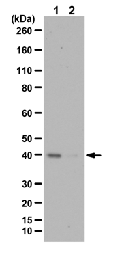 免疫亲和纯化的兔多克隆抗体。可识别出在Ser300处磷酸化的~44 kDa的PDH-E1α蛋白。
