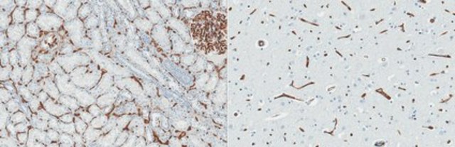 Immunohistochemistry (Paraffin) Analysis: A 1:250 dilution from a representative lot detected CD34 in human brain tissue sections.