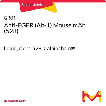 Anti-EGFR (Ab-1), mouse monoclonal, clone 528, recognizes EGF receptor protein in A431 cells and normal skin. It is validated for use in ELISA, IF, IP, IHC (frozen,paraffin) & neutralization studies.