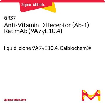 Does not cross-react with estrogen and glucocorticoid receptors. About 50% of breast tumors express vitamin D receptor protein. For gel shift assays, order antibody at 1 mg/ml; contact Customer Service for additional information. For paraffin sections pre-treatment in 2N HCl for 20 min at 37°C prior to staining. Antibody should be titrated for optimal results in individual systems.