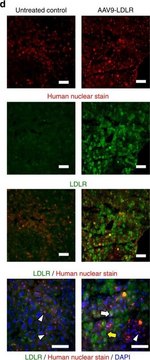 染色所有人类细胞类型的细胞核,使细胞核呈弥漫性染色。 中期细胞的染色体染色呈阴性。还可以染色灵长类动物的细胞核(Sanchez-Pernaute, 2005)。抗体不与小鼠或大鼠的细胞核反应。