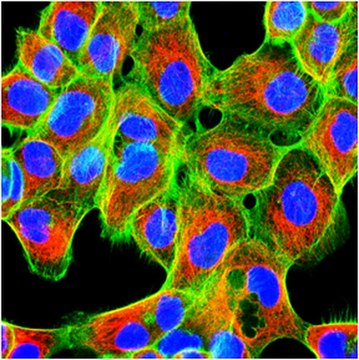 免疫细胞化学分析:4.0µ g/mL代表性批次在A431、HeLa和HUVEC细胞中检测到酪氨酸化α-微管蛋白。