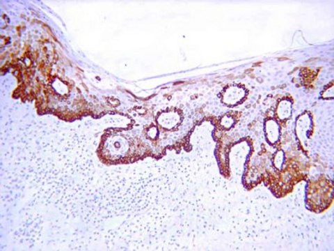 细胞角蛋白19.MAB3238 与腺上皮细胞和大多数癌细胞反应。不与肝细胞和肝癌细胞反应。