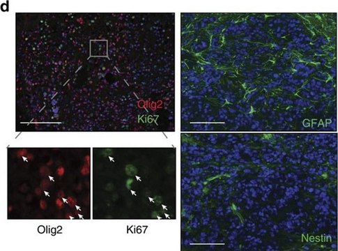 该批次以1:1000的比例稀释在10 μg小鼠脑裂解物中检测到胶质纤维酸性蛋白