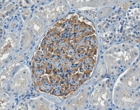 免疫组织化学分析:一个代表性批次以1:250稀释度在人肾组织中检测到PLA2R。