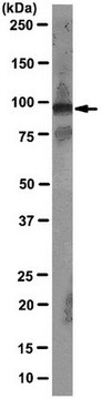 蛋白质印迹分析:该抗体以1:2,000稀释度在10 µg人淋巴结组织裂解物中检测到TERT。