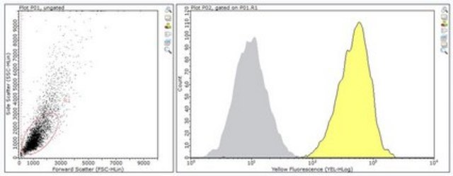 流式细胞术分析:一个代表性批次在流式细胞术应用中检测到钙联接蛋白(Rajagopalan,S.,et. al.(1994).J Exp Med. 180(1):407-12)。