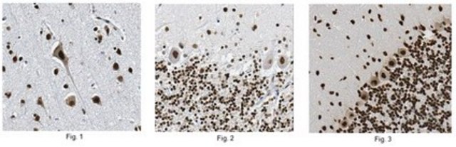 Immunohistochemistry Analysis: A 1:2,000 dilution from a representative lot detected Tdp43 in human frontal lobe, human cerebellum, and rat cerebellum tissue.