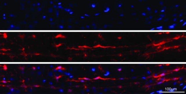 同种异体移植炎症因子-1(AIF-1)是一种17 kDa干扰素-γ(IFN-γ)诱导性Ca(2+)结合EF手蛋白,其在HLA III类基因组区域内进行编码。AIF-1也被称为电离的Ca(2+)结合连接蛋白1、小胶质细胞反应因子1和大炎肽。AIF-1的表达主要限于巨噬细胞/单核细胞谱系,并通过细胞因子(例如IFN-γ)增强。据报道它与神经元功能、炎症反应、同种异体移植排斥、自身免疫以及巨噬细胞的激活和功能有关。它也显示在自噬性疾病(例如实验性自身免疫性脑脊髓炎、神经炎和葡萄膜炎模型)的巨噬细胞和小胶质细胞中表达。
