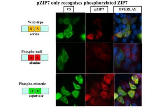使用经验证可用于免疫组织化学和蛋白质印迹的该小鼠单克隆抗磷酸化ZIP7(Ser275/276)抗体(克隆3-3-3,货号MABS1262)检测ZIP7。