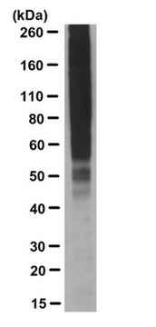 蛋白质印迹分析:在蛋白酶体抑制剂MG-132(目录号474790)处理后(由Blagoy Blagoev博士提供,University of Southern Denmark),1.0 µg/mL的代表性批次检测到HEp-2人上皮细胞中泛素化蛋白的累积。