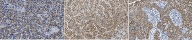 Immunohistochemistry Analysis: A 1:1,000 dilution from a representative lot detected N-cadherin in human cervical cancer, adrenal gland, and liver tissue sections.