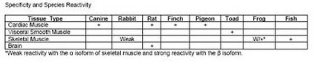 A ~565 kDa doublet representing the α and β isoforms is observed in non-mammalian vertebrates. In frozen sections, Clone C3-33 strongly stains the myofiber consistent with the sarcoplasmic reticulum of the RyR. This antibody has been reported to work for immunoprecipitation; the concentration is assay-dependent. Antibody should be titrated for optimal results in individual systems.