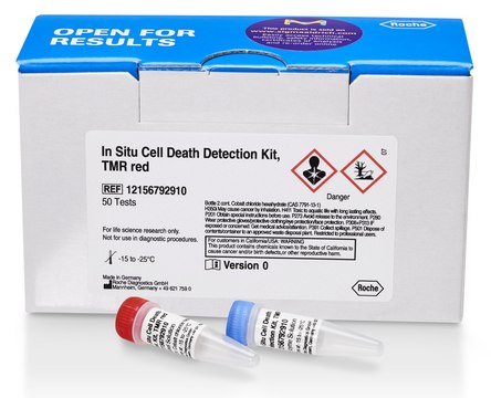 原位细胞死亡检测试剂盒,TMR红已用于末端脱氧核苷酸转移酶生物素-dUTP切口末端标记(TUNEL)检测。它已用于凋亡检测。