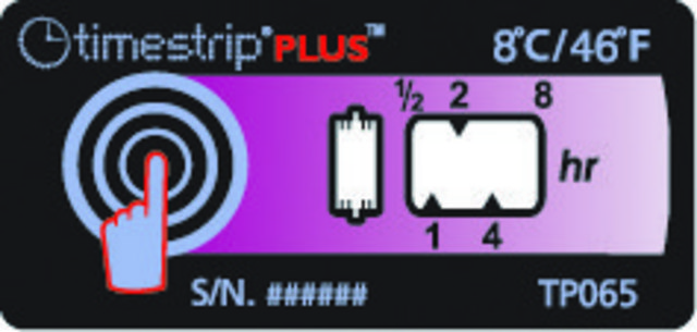 Timestrip® PLUS 指示器以简单快捷的方式记录在指定阈值温度下,或高于指定阈值温度的运行时间。它们是小型、自粘标签,可以连接或集成到产品或设备中。