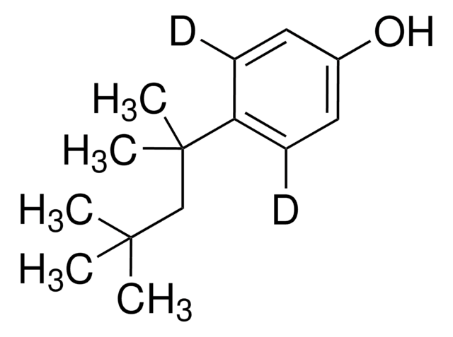 4-tert-Octylphenol-3,5-d2 solution is an deuterated standard used for the analysis of mono and di-ethoxylates of nonylphenol (NP) and octylphenol (OP) in environmental samples using solid-phase micro extraction followed by gas chromatography with mass spectrometry (SPME-GC-MS).
