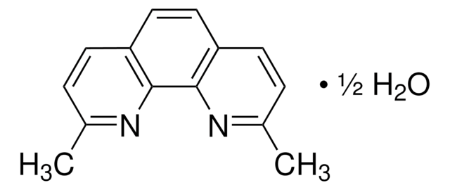 Neocuproine hemihydrate may be used as an analytical reagent for the determination of copper in water-ethanol solution using thermal-lens spectrometry and captopril in pure form and pharmaceutical formulations via complex formation followed by a series of reactions using spectrophotometric technique.