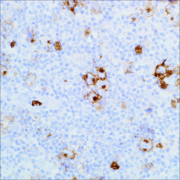 A positive reaction for CD15 combined with a negative reaction for LCA and other B and T lineage markers provides support for Reed-Sternberg cells found in Hodgkin′s disease. Also this antibody does not detect mesotheliomas making it a more frequently used antibody to distinguish epithelial mesothelioma from adenocarcinoma.