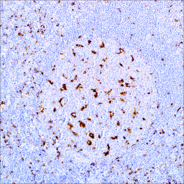 Anti-CD68 marks cells of monocyte/macrophage lineage. This antibody is capable of staining monocytes, Kupffer cells, osteoclasts, granulocytes and their precursors; lymphomas are negative or show a few granules. This antibody may be useful for the identification of myelomonocytic and histiocytic tumors. Anti-CD68 may help to distinguish malignant fibrous histiocytoma from other pleomorphic sarcomas. However, since this detects a formalin-resistant epitope that may be associated with lysosomal granules, other lysosome-rich cells may also stain.