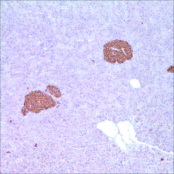 Anti-synaptophysin reacts with neuroendocrine cells of the human adrenal medulla, pituitary,thyroid, lung, pancreas, and gastrointestinal mucosa. Positive staining is seen in neuronsof the brain. This antibody identifies normal neuroendocrine cells and neuroendocrineneoplasms. Diffuse, finely granular, cytoplasmic staining is observed, which probablycorrelates with the distribution of the antigen within neurosecretory vesicles. Antisynaptophysin is an independent, broad-range marker of neural and neuroendocrinedifferentiation.