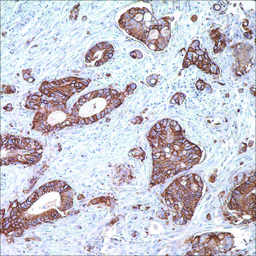 Glucose transporter type I (GLUT1), a prototype member of GLUT superfamily, is a membrane-associated erythrocyte glucose transport protein. It is a major glucose transporter in the mammalian blood-brain barrier, and also mediates glucose transport in endothelial cells of the vasculature, adipose tissue, and cardiac muscle. GLUT1 is detectable in many human tissues including those of colon, lung, stomach, esophagus, and breast. GLUT1 is overexpressed in malignant cells and in a variety of tumors that include the breast, pancreas, cervix, endometrium, lung, mesothelium, colon, bladder, thyroid, bone, soft tissues, and oral cavity. Immunohistochemical detection of GLUT1 has been shown to discriminate between reactive mesothelium and malignant mesothelioma in more than one study.Anti-GLUT1 is also useful in distinguishing benign endometrial hyperplasia from atypical endometrial hyperplasia and adenocarcinoma.