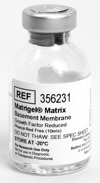 Corning Matrigel matrix is a solubilized basement membrane preparation extracted from the Engelbreth-Holm-Swarm (EHS) mouse sarcoma, a tumor rich in extracellular matrix proteins, including Laminin (a major component), Collagen IV, heparan sulfate proteoglycans, entactin/nidogen, and a number of growth factors.