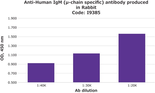 Anti-Human IgM (μ-chain specific) antibody produced in rabbit has been used in enzyme linked immunosorbent assay.