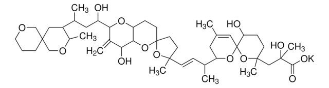 1S/C46H72O13.K/c1-27-20-35(56-46(22-27)36(48)12-15-42(7,59-46)24-43(8,52)40(50)51)28(2)10-14-41(6)17-18-45(58-41)16-11-34-39(57-45)37(49)30(4)38(55-34)33(47)21-29(3)32-23-44(26-54-31(32)5)13-9-19-53-25-44;/h10,14,22,28-29,31-39,47-49,52H,4,9,11-13,15-21,23-26H2,1-3,5-8H3,(H,50,51);/q;+1/p-1/b14-10+;
