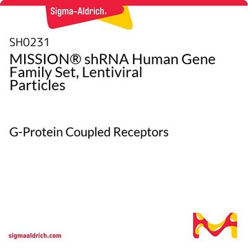 Lentiviral particles (representational, plate titer) are provided in 96-well plates that are barcoded for simple identification. Aliquots of 4 x 50μl are provided to prevent the need for excessive freeze/thaw, and maximize functional viral particles. Each gene family set is representationally titered (10% of clones). Fully titered sets are also available, for more information inquire at RNAi@sial.com. A CD containing RefSeq, gene description, gene symbol, clone ID, hairpin sequence, locus link, and plate map positions are provided with the gene family set.