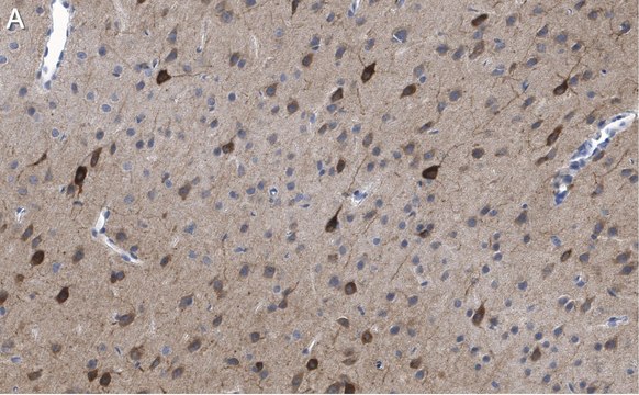 Immunofluorescence Analysis: A 1:1,000 dilution from a representative lot detected GluR1 in rat brain tissue sections.