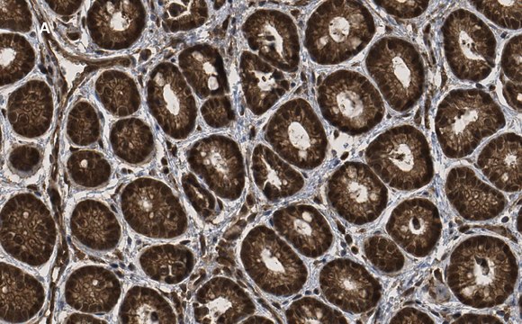 Immunohistochemistry (Paraffin) Analysis: A 1:100 dilution from a representative lot detected p44 MAPK (ERK1) in rat colon and rat cerebral cortex tissue sections.