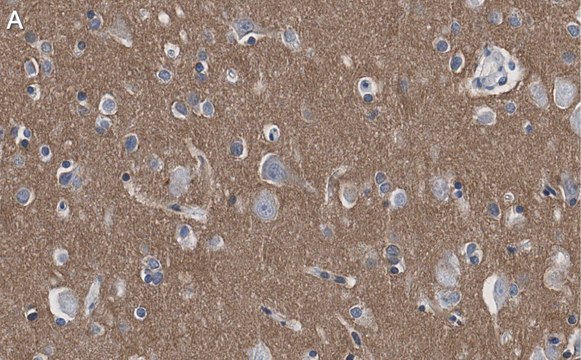 Immunohistochemistry (Paraffin) Analysis: A 1:100 dilution from a representative lot detected CD56 (NCAM1) in human cerebral cortex tissue sections.