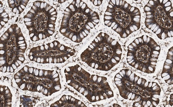 Immunohistochemistry (Paraffin) Analysis: A 1:100 dilution from a representative lot detected g-Actin in human small intestine tissue sections.