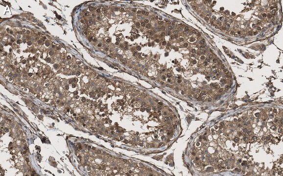 Immunohistochemistry (Paraffin) Analysis: A 1:100 dilution from a representative lot detected KLF5 in human testis tissue sections.