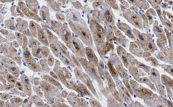 Immunohistochemistry (Paraffin) Analysis: A 1:100 dilution from a representative lot detected GLUT-4 in human heart tissue sections.