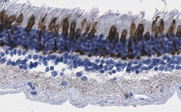 Affinity Binding Assay: A representative lot of this antibody bound Green/Red Opsin with a KD of 3.4 x 10-7 in an affinity binding assay.