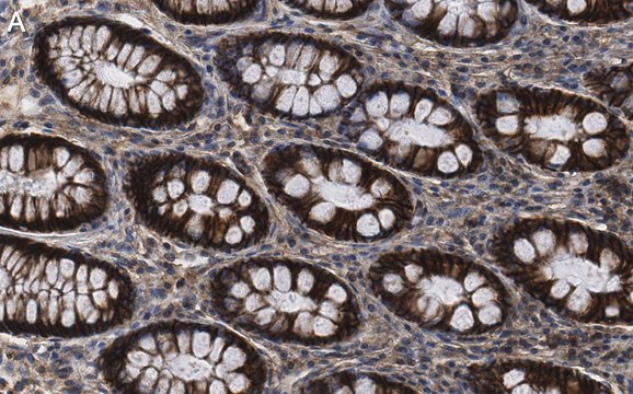 Immunohistochemistry (Paraffin) Analysis: A 1:1,000 dilution from a representative lot detected Na+-K+ ATPase 1 in human colon tissue sections.