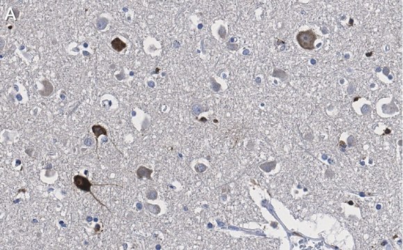 Immunohistochemistry (Paraffin) Analysis: A 1:1,000 dilution from a representative lot detected Prion Protein in human cerebral cortex and human Alzheimer′s diseased brain tissue sections.