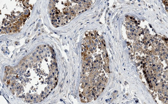 Immunohistochemistry (Paraffin) Analysis: A 1:1,000 dilution from a representative lot detected PKM2 in human testis tissue sections.