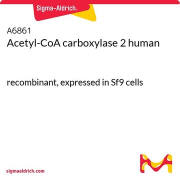Acetyl-CoA carboxylase is responsible for synthesis of Malonyl-CoA which is an inhibitor of fatty acid oxidation in skeletal muscle mitochondria. The enzyme may be used to study the effect on production of malonyl-CoA as well as fatty acid oxidation during exercise. The enzyme also may be used for ACC regulation study in anti-obesity and anti-type 2 diabetes therapeutics.