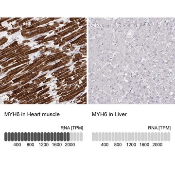 Monoclonal Anti-MYH6 Prestige Antibodies® Powered by Atlas Antibodies is developed and validated by the Human Protein Atlas (HPA) project . Each antibody is tested by immunohistochemistry against hundreds of normal and