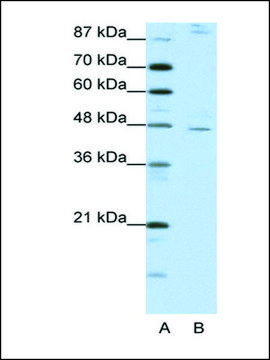 Anti-NR2F2 (AB1) polyclonal antibody is used to tag COUP transcription factor 2/nuclear receptor subfamily 2, group F, member 2 protein for detection and quantitation by Western blotting and in plasma by immunohistochemical (IHC) techniques. It is used as a probe to determine the roles of COUP transcription factor 2 in cell signaling pathways such as the glucagon-like peptide 1 (GLP-1) signaling cascade.
